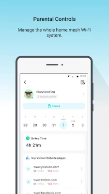 • Parental Controls: Schedule or pause internet access to promote healthy internet habits.