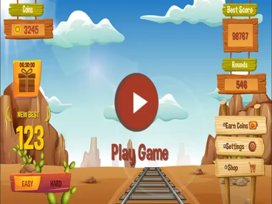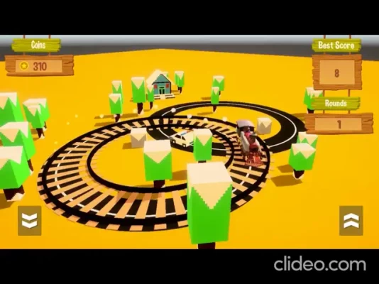 In easy mode, there are only two tracks of railway. On one track, you can drive your train and on another circle track, cars will appear time by time to increase the difficulty level gradually.