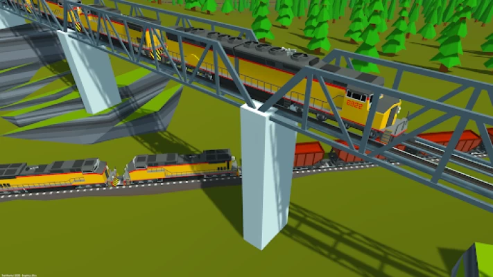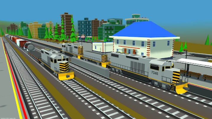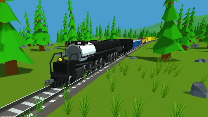 Experience the thrill of driving a freight train with TrainWorks, a low poly train simulator game for Android. Transport goods across a vast and detailed map, featuring forests, mountains, and cities.