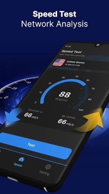 Proxy VPN will show you the download and upload speeds, as well as the ping time while connected to the VPN. You can connect to the VPN server on your device and then open the speed test app to run the test.