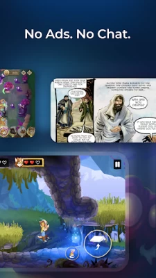 - Bible Games: Immerse yourself in Scripture as you conquer challenges inspired by the Word.