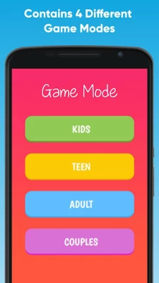 In this game there are 4 different game modes: kids, teen, adult (dirty) and couples.