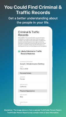 TruthFinder background checks make it easy to find people or get more details on almost anybody. Experience the power of reverse phone lookup, background check, criminal record, public records search, phone number search, and property search information all on the go.