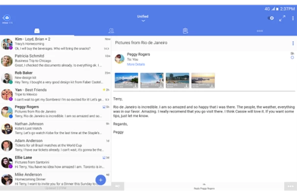 Supporting IMAP, POP3 as well as Exchange protocols. Type App automatically configures them once you sign in. View & sync all your email accounts from one Unified Inbox, while enjoying lightning fast true push email.