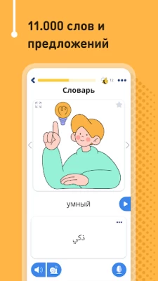 • 6.000 арабских слов (постоянно пополняются): самые используемые существительные, глаголы, прилагательные, и т.д., поделенные на 10 уровней и 200 тем.
