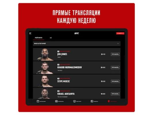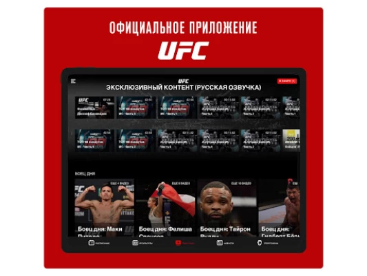 - Впервые все турниры UFC в прямом эфире на русском и английском.