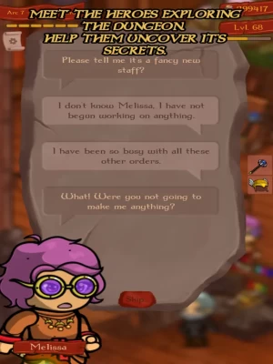 Develop your own blacksmith shop - as you progress you can create more valuable items and satisfy the needs of more heroes. Become a powerful blacksmith and lead your squad to victory in a series of epic quests!