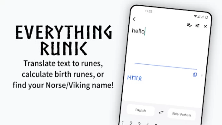 Translate any text into Norse runes! Simply enter or paste text and the application will translate it into the runic language (Elder Futhark, Anglo Saxon, Younger Futhark, and Ogham). Fun for sharing with pagan friends or learning how to read/write in runic. Perfect for any pagan!