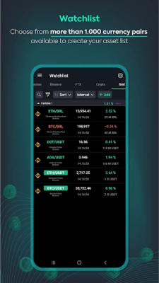 • Get a full list of cryptocurrency pairs available on the main exchanges, and stay up to date with the market capitalization of the main crypto assets.
