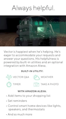 Vector is cloud connected and self-updates, so he’s always getting smarter and adding new features. He can even charge himself (electric cars and phones could learn a thing or two). Vector is your robot sidekick who’s up for anything.
