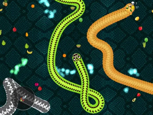 Avoid collisions with other snakes and make others crash into you.