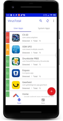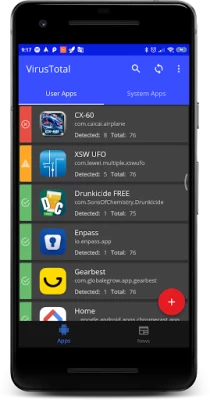 In this new version, in addition to analyzing all installed applications and to upload them if they are not in Virustotal, any file or url can be analyzed either from the application itself or another application.