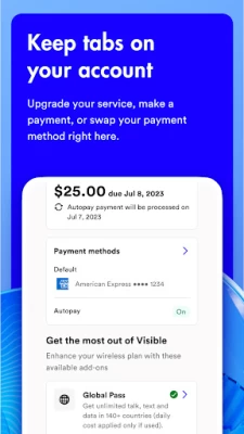The Visible app makes managing your service easy - you can make a payment, upgrade your plan and get 24/7 assistance in just a few taps. Here’s a glimpse of what else you can do in the app: