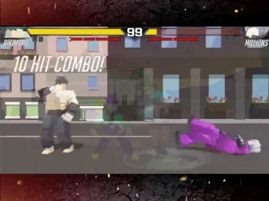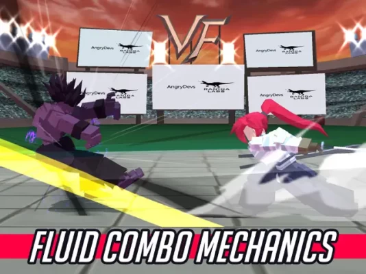 The game features block-styled cast of fighters merged with anime characters and a crossover gameplay of classic fighting games with emphasis on intuitive controls and simple art style.