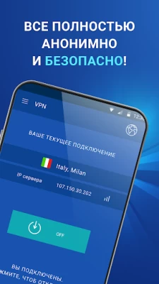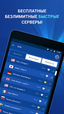 Выбирайте удобный для вас бесплатный сервер в любой точке мира! Если не хотите выбирать, то мы сделаем это за Вас и подключим к самому быстрому в одно касание! ВПН - это бесплатно!