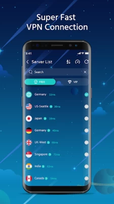Free Fast VPN is fast! It detects your location automatically and connects you to the nearest and fastest server, which means your connection will be much faster than if you used any other VPN.