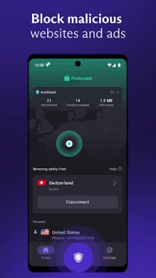 • Ad blocker (NetShield): a DNS filtering feature that protects you from malware, blocks ads, and prevents website trackers from following you across the web