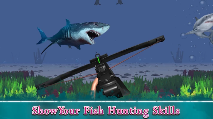 To prevent being attacked when in hunting mode, keep an eye on the map, place the white dot on approaching fish, and shoot them.