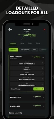 Find the perfect loadout quickly, or use the app to store your builds and share them with your community and friends.