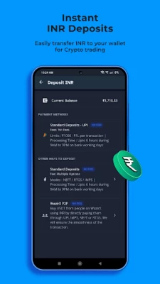 The WazirX App has a beginner-friendly and easy-to-use UI/UX, which makes it simple to navigate through the app. The intuitive interface and efficient design allow crypto enthusiasts like you to trade the world's best digital assets in no time. Whether you want to deposit money or withdraw funds, the process is seamless.