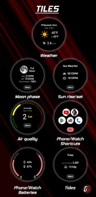 Our app breathes new life into your smartwatch by adding a variety of Complications and Tiles. From tracking the phases of the moon to monitoring air quality and tides, WearOS Toolset turns your smartwatch into a personalized information hub.