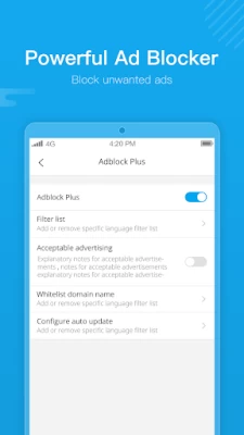 ● Ads Block: Integrated Ad Blocker to effectively block annoying ads, pop-ups, banners, as well as some specific JavaScript, to give you a comfortable browsing experience and make the page loading with a rapid speed, also reduce the internet data usage for users.