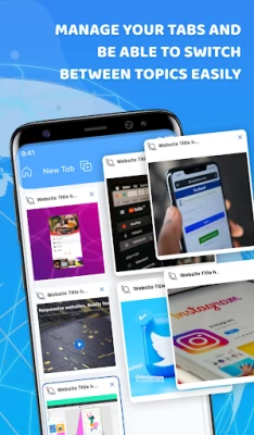 In our browser you can find: 1. Web ad blocking 2. Incognito browsing experience 3. Tab management 4. History management 5. Files downloading and management 6. Bookmarks