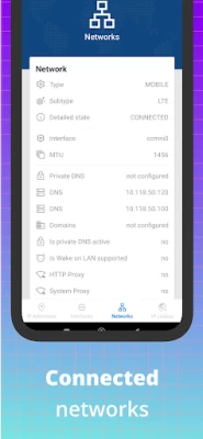 - Networks: see all the networks the device is currently connected to, like Mobile network and WiFi