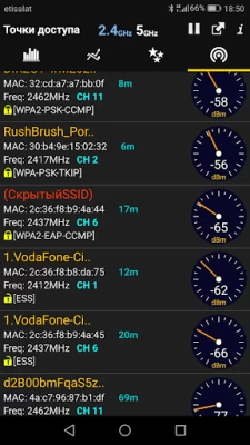 Возможности: - Оптимизатор Wi-Fi сети для снижения уровня помех - Анализатор каналов для близлежащих точек доступа - Предоставление данных и расчет расстояния в реальном времени - История интенсивности сигнала - Поддержка 2,4 ГГц/5 ГГц - Информация о скрытых WiFi сетях - Копирование MAC-адреса - Оптимизатор каналов и многое другое!