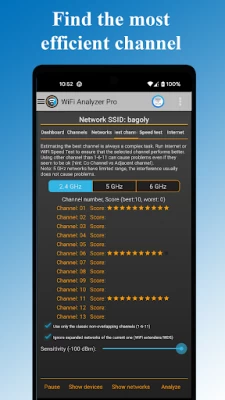 WiFi Analyzer Pro recommends the best channel and place for your router, get the best out of your WiFi!