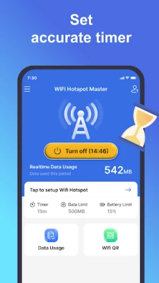 ? Turn off time management: Set timer for your wifi hotspot. The free hotspot share will automatically be turned off when the timer runs out.