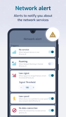 3). Network Alerts: Get alerts for No service, Roaming, Low signal or no data connections. Also you can set specific time for alerts.