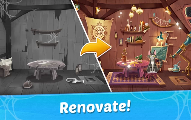 Welcome to Witch & Cats! Swipe blocks, solve match-3 puzzle and help Witch Rosy decorate her castle. An exciting adventure is calling you!