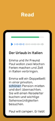 A learning process designed for you that is both easy and guided: You’ll feel like you’re learning more and more German every day. Every sentence, exercise, review, and reading has been carefully selected for you.