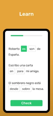 A learning process designed for you that is both easy and guided: You’ll feel like you’re learning more and more Spanish every day. Every sentence, exercise, review, and reading has been carefully selected for you.