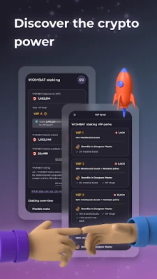 1. VIP Staking: Stake your WOMBAT tokens to get paid more crypto rewards and get exclusive NFTs for free.