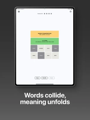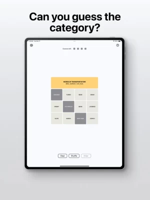 - Select four tiles then press 'Enter' to see if they belong to a common category.