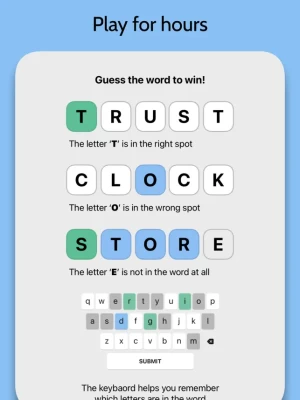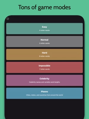 1. Guess the word in 6 chances or less. Each time you guess a word, you will find out which letters are correct. Use this information to solve the puzzle. See how many chances it takes to get the answer and how many in a row you can get right. Try tons of different game modes including Impossible Mode (7 letter words) and Celebrity Mode (guess the names of celebrities).