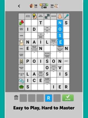 Wordgrams is a turn-based game where two players complete the crossword puzzle together and compete for the highest score. It’s a new take on crossword puzzles too - Scandinavian style! - with clues inside the squares and some clues are pictures.