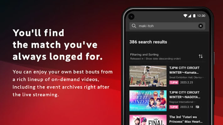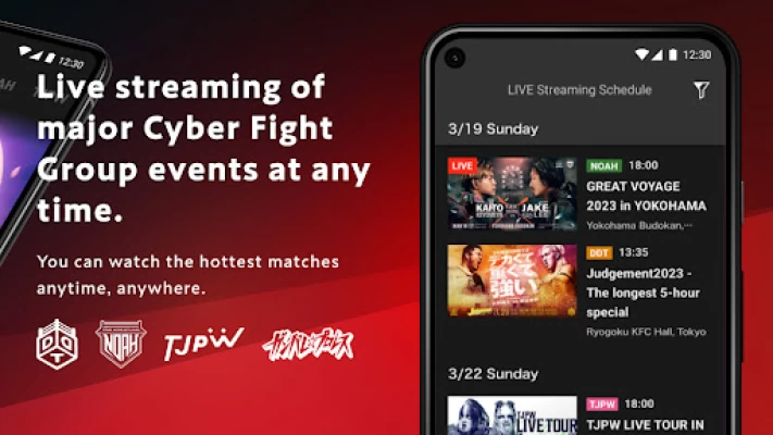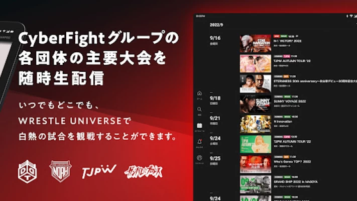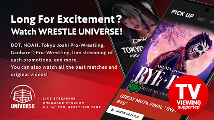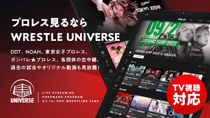 Available Pro-Wrestling NOAH, DDT Pro-Wrestling, Tokyo Joshi Pro-Wrestling, Ganbare Pro-Wrestling matches anytime, anywhere.
