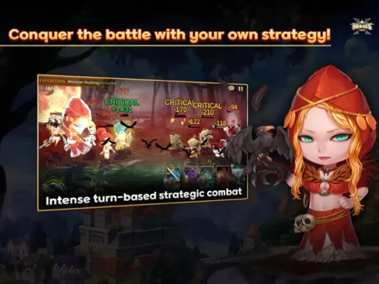 * Use the optimal strategy by controlling various variables such as hero arrangement, skill selection, and activation timing. You can enjoy a powerful turn-based strategy battle.