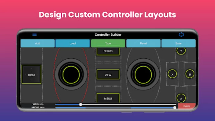- Controller Builder: Create and save your very own custom full screen or mini Gamepads for in-game play.
