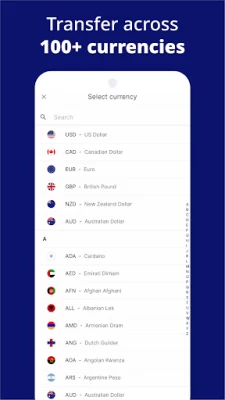 ● Transfer currency across 100+ currencies