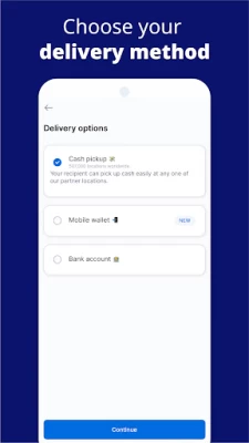 ● Choose from multiple payout methods for your recipient to receive your money transfer, including bank deposit, cash pickup, and mobile wallet