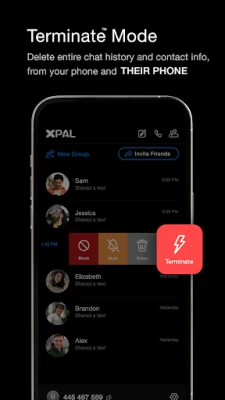 REVERSE PIN FOR IMMEDIATE RESET PROTECTION – When you need a quick and total reset, use our exclusive one-step Reverse PIN security feature to permanently delete all your xPal message history on ALL devices. This includes all messages sent to others, as well as their own conversations with you, from their phones. This feature will also instantly block/mask your contacts, just like having a clean slate.