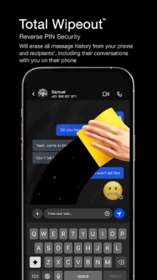 SINGLE MESSAGE OR ENTIRE CONVERSATION ERASE from all participants – Delete any single text message, an entire conversation or chat history, on your device or from all participants so that no trace is left behind. Deleting entire conversations include deleting the other party’s conversation with you on their device as well. It’s also the ability to delete your entire contact info and history from the other party’s phone.