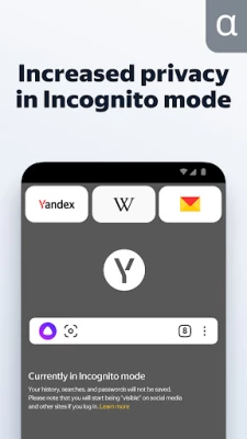 Surf the web in private using Incognito Mode — Yandex Browser will not keep track of your passwords, search queries, or browsing history in this mode.