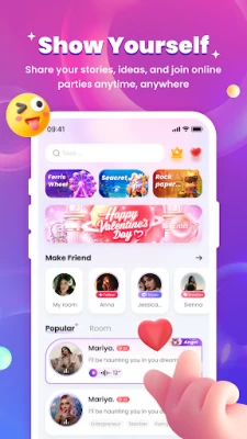 You can create your room at any time, invite your friends to join your room for online parties, participate in your favorite activities, singing competitions, playing games, etc. More activities are waiting for you to participate in, enjoy life & have fun.