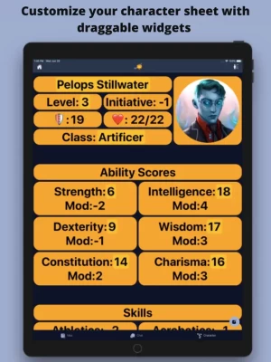 Character: Fully customizable to use with any TTRPG system, automatic build and level up tools for 5th edition, macros provide shortcuts to automatically add your modifiers to dice rolls, and character sheets can be customized with drag and drop widgets.