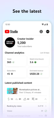 The official YouTube Studio app is the best way for you to understand and connect with the people in your community using the device you always have with you. Use the app to: